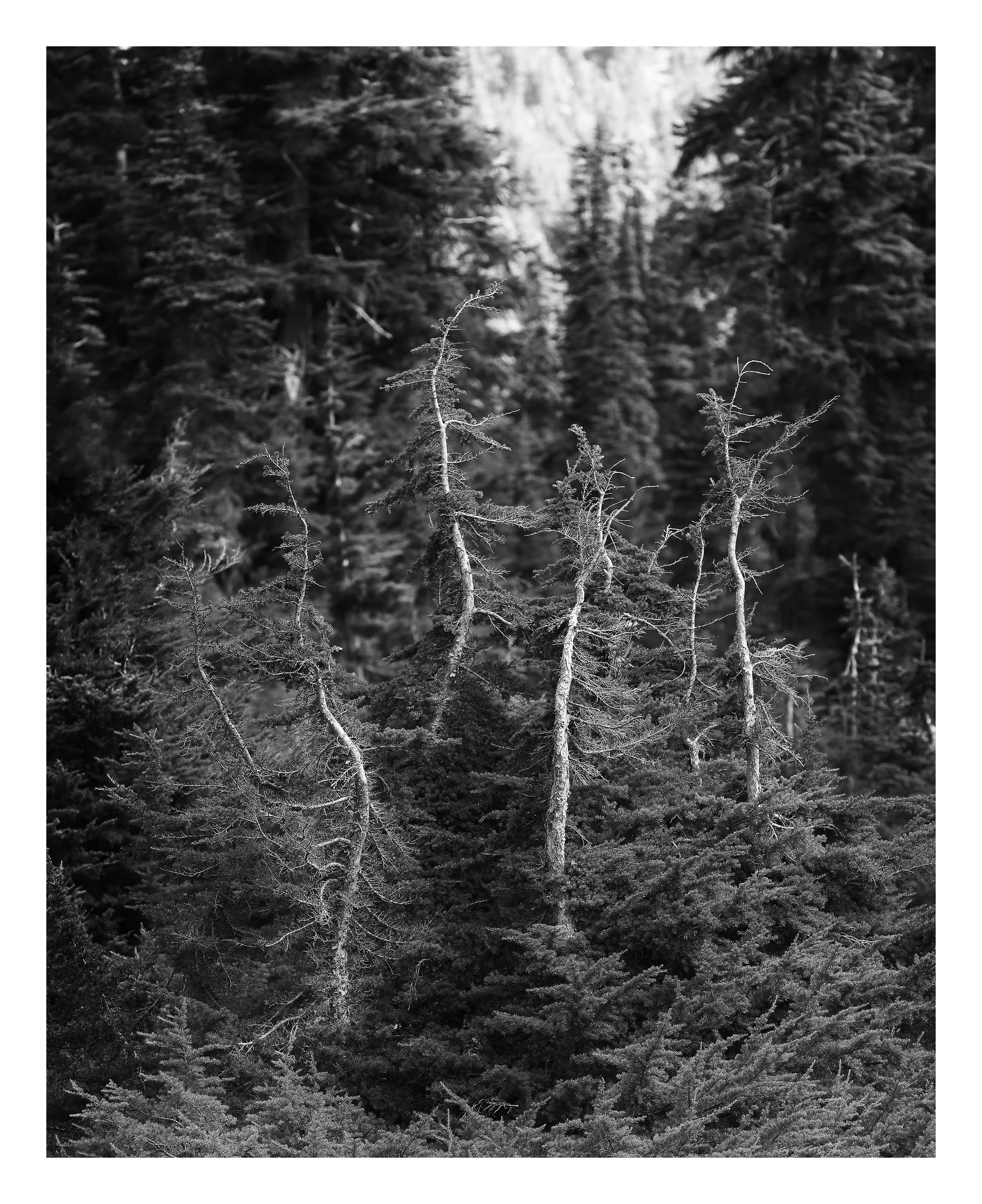 As a forester, my life revolves around trees in one way or another. Something that strikes me about these subjects is the endless variability and unique power of expression each individual, or perhaps multiple, tree has. Whether it is the form of the branches, alignment of the bole, direction of the leaves, texture of the bark, or even the environment a tree grows in, there is always something particular that catches my attention and spurs further observation of the subject.